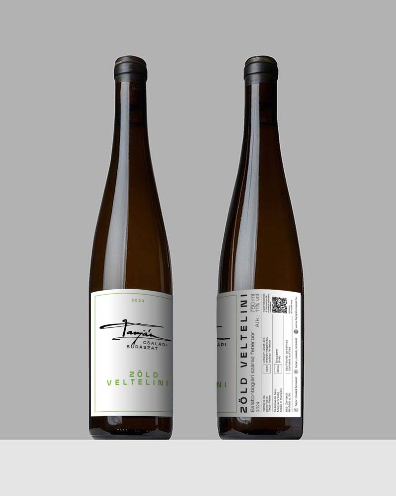 A zöld veltelinit világos sárga szín jellemzi. Illatban,trópusi gyümölcs, zöld alma, citrusos jegyek Jellemzik.Kerek savak
